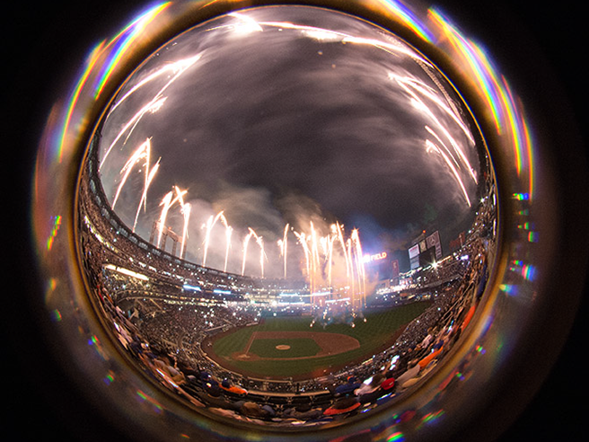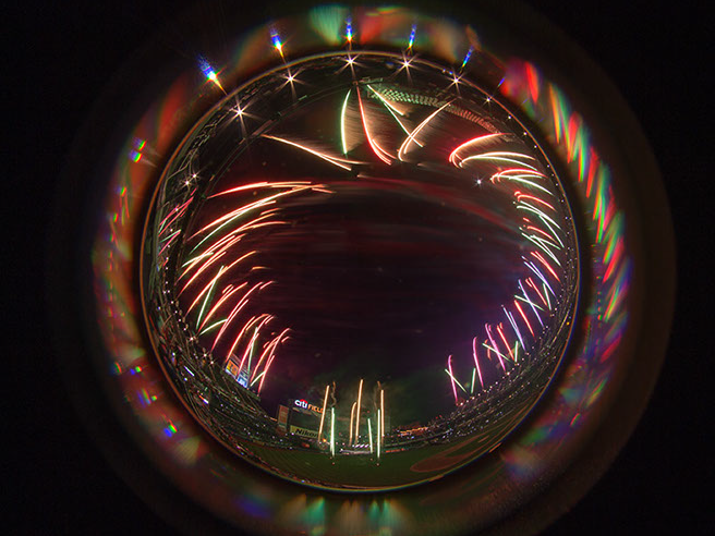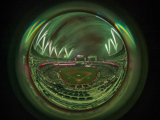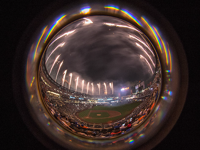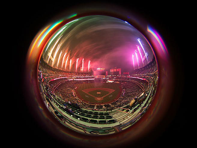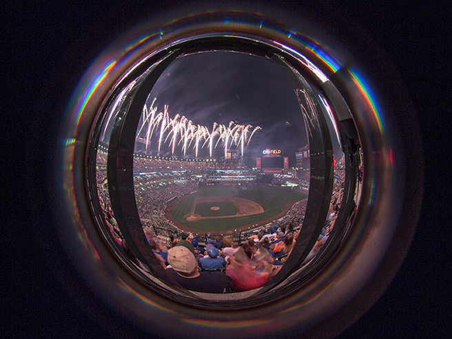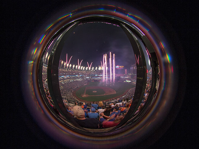 This has become a long term project as I seek to explore different approaches. In the past 4 years, I’ve had perhaps seven opportunities to capture the fireworks at Citifield with it’s unique presentation. A somewhat spherical overhead with equal interest on the field. Over these 4 years, I’ve learned the type of show that is presented and where the points of interest are. On some of those occasions, I was allowed to bring in a tripod and on others I had to improvise, using my seat, or the cup-holder in front of me.