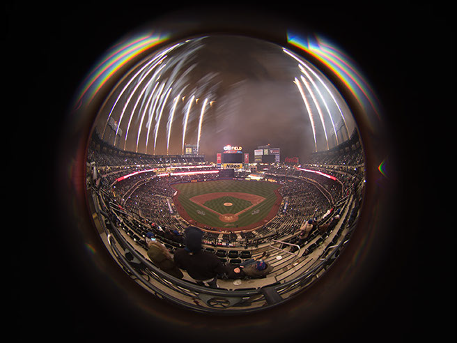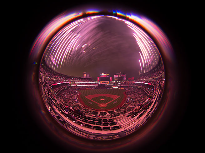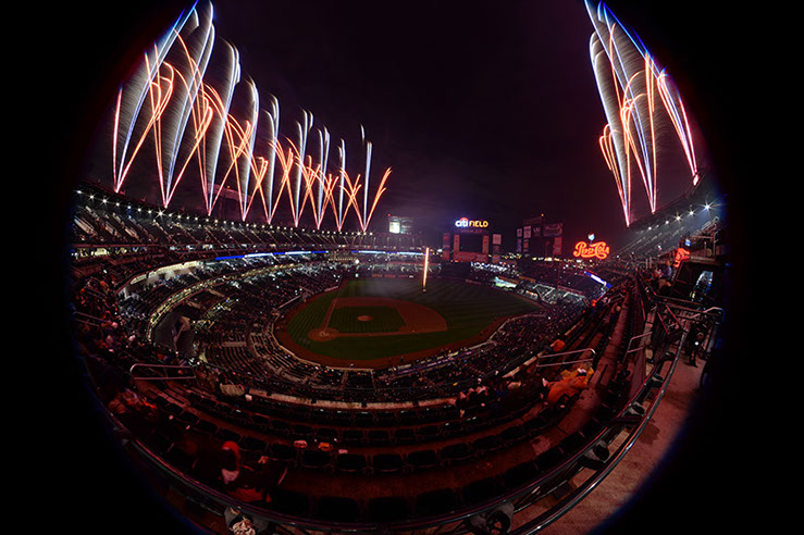 This has become a long term project as I seek to explore different approaches. In the past 4 years, I’ve had perhaps seven opportunities to capture the fireworks at Citifield with it’s unique presentation. A somewhat spherical overhead with equal interest on the field. Over these 4 years, I’ve learned the type of show that is presented and where the points of interest are. On some of those occasions, I was allowed to bring in a tripod and on others I had to improvise, using my seat, or the cup-holder in front of me.